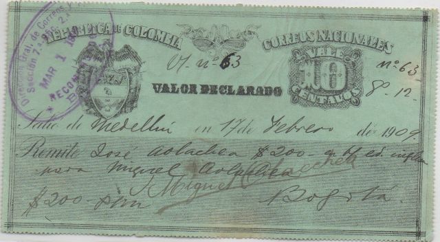 Las Cubiertas de Valor Declarado jugaron un papel fundamental en el desarrollo del correo en Colombia porque aseguraron con su existencia el envío de documentos y dinero de manera segura y confiada entre particulares e instituciones.