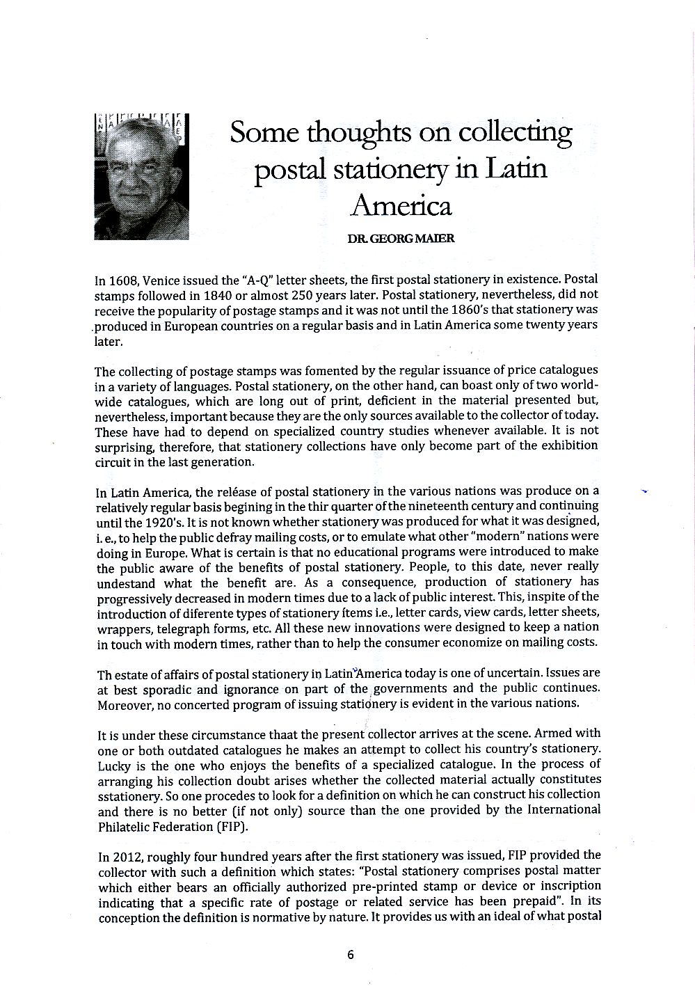 En esta ocasión nos presenta en el número 26 de la Revista FIAF, órgano oficial de la Federación con un interesante artículo sobre enteros postales Americanos.-