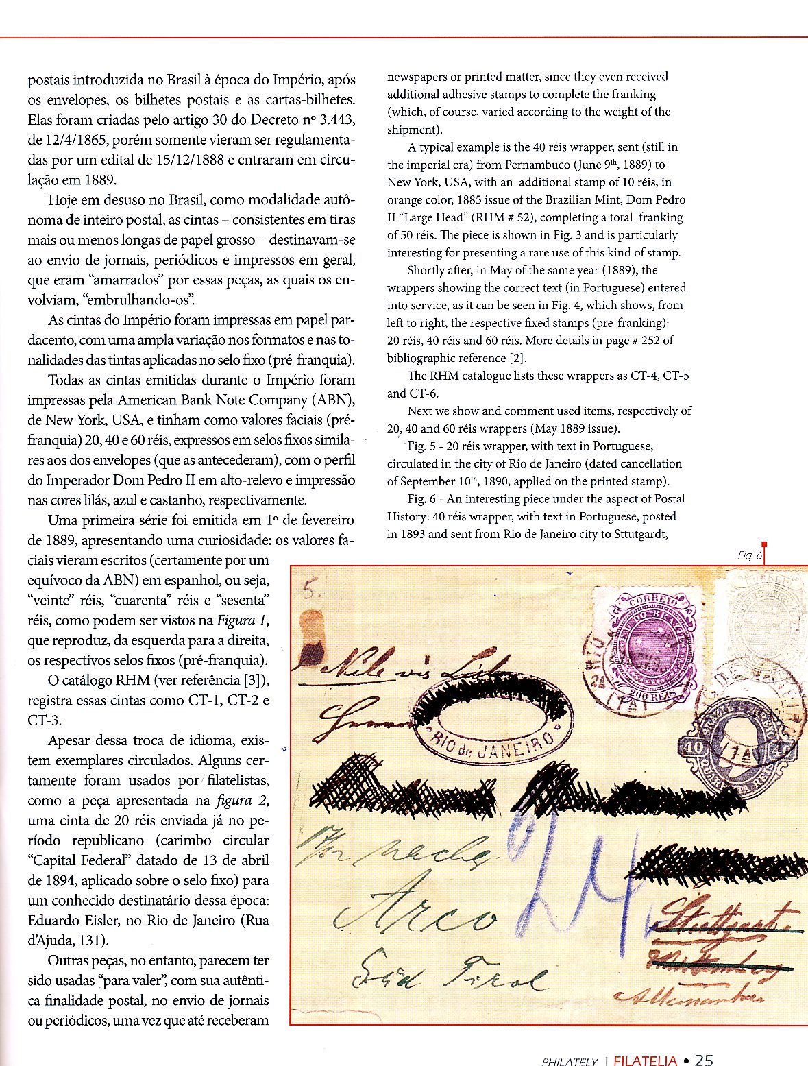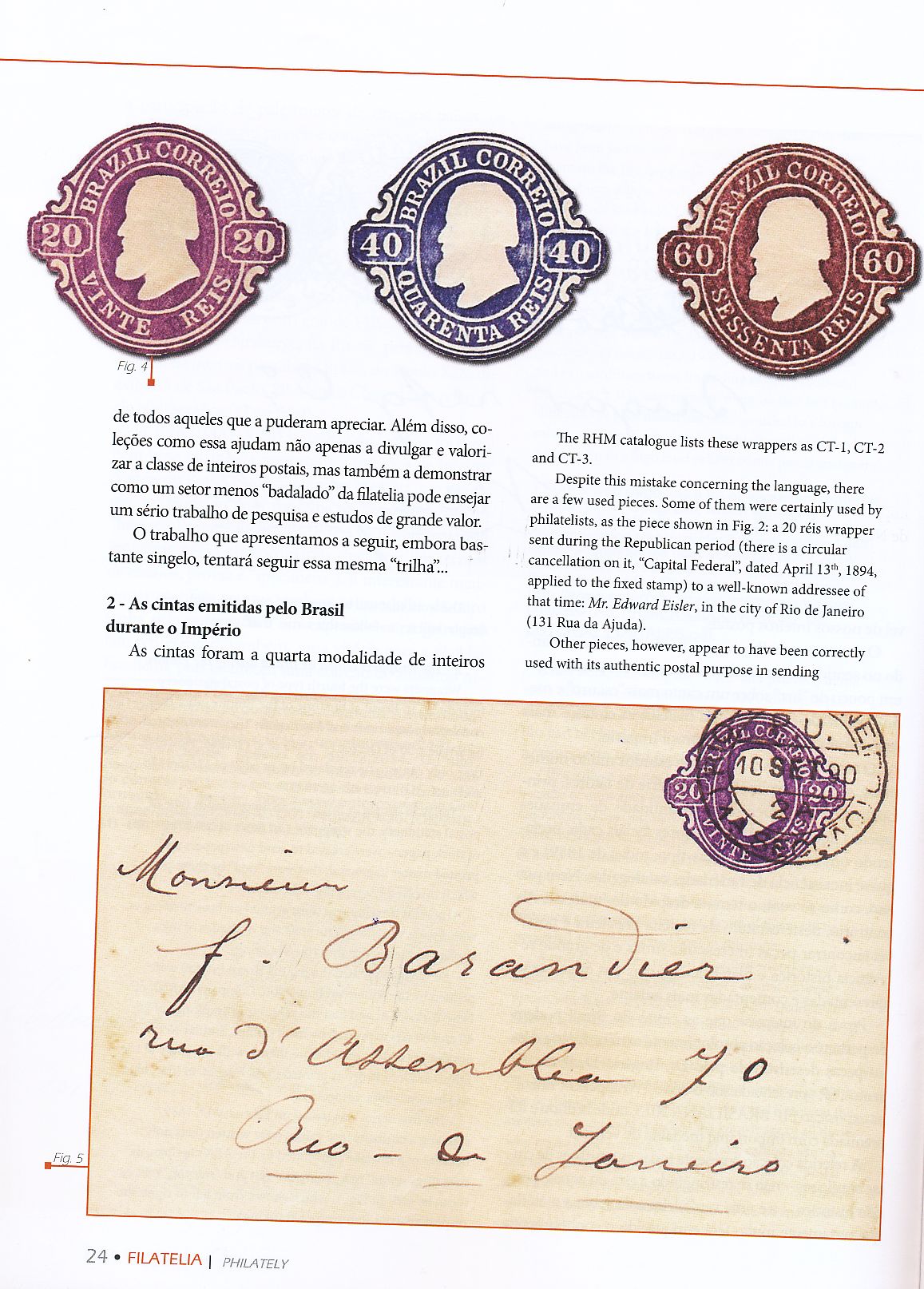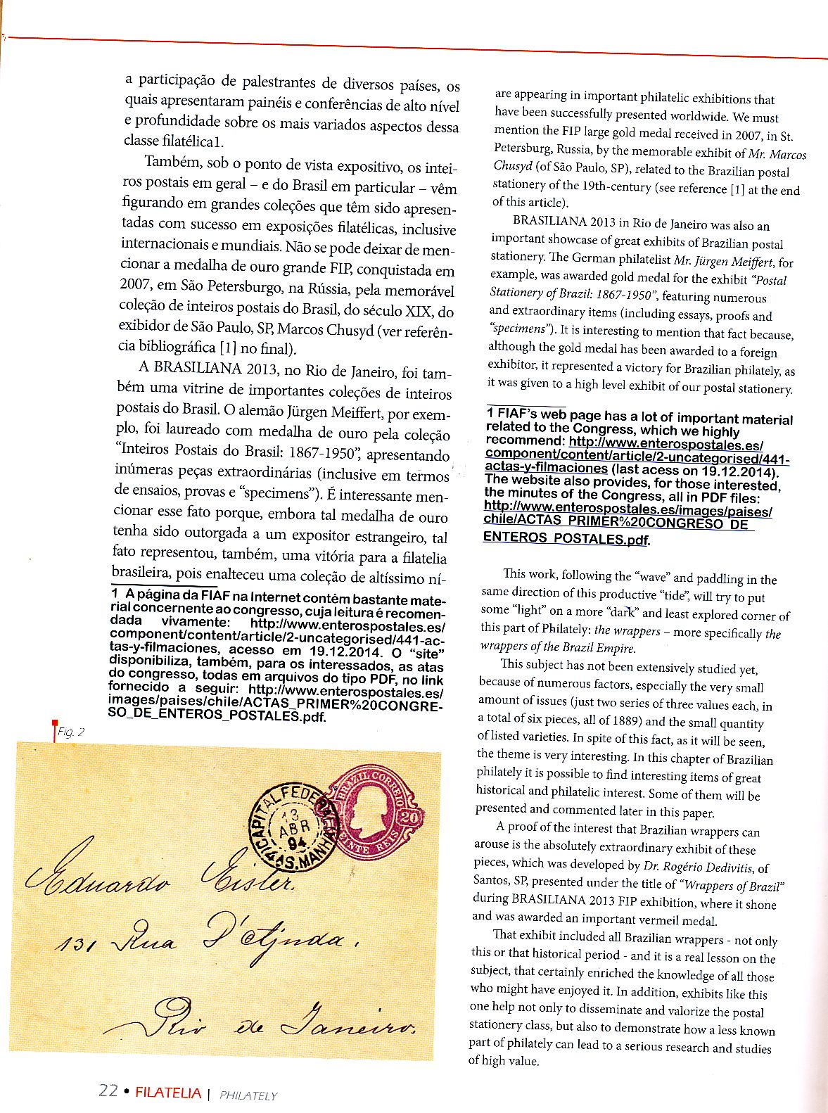 Otra figura importante dentro de los enteros postales americanos es José Carlos Vasconcellos, en la Revista Filatelia de la Federación Brasileña de Asociación Filatelicas, escribe este interesantísimo artículo sobre los enteros Brasileños del Imperio.-