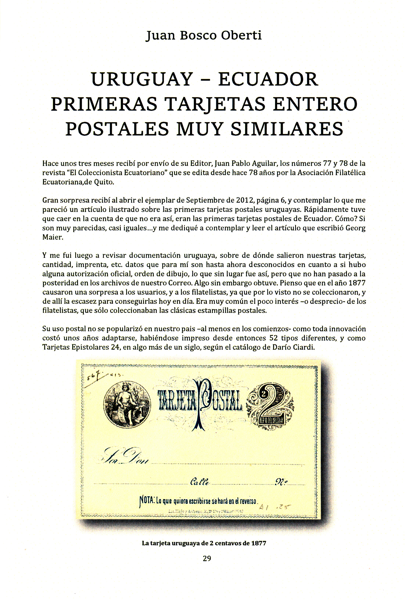 ...A través de nuestro amigo Aldo Samame tenemos noticia de que ha sido nombrado un nuevo Jefe del Grupo de Trabajo de Enteros Postales de la Federación uruguaya, Carlos Fernández Rocha.